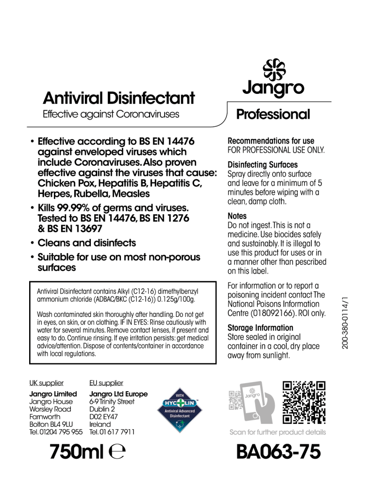 Jangro Antiviral Disinfectant 750ml
